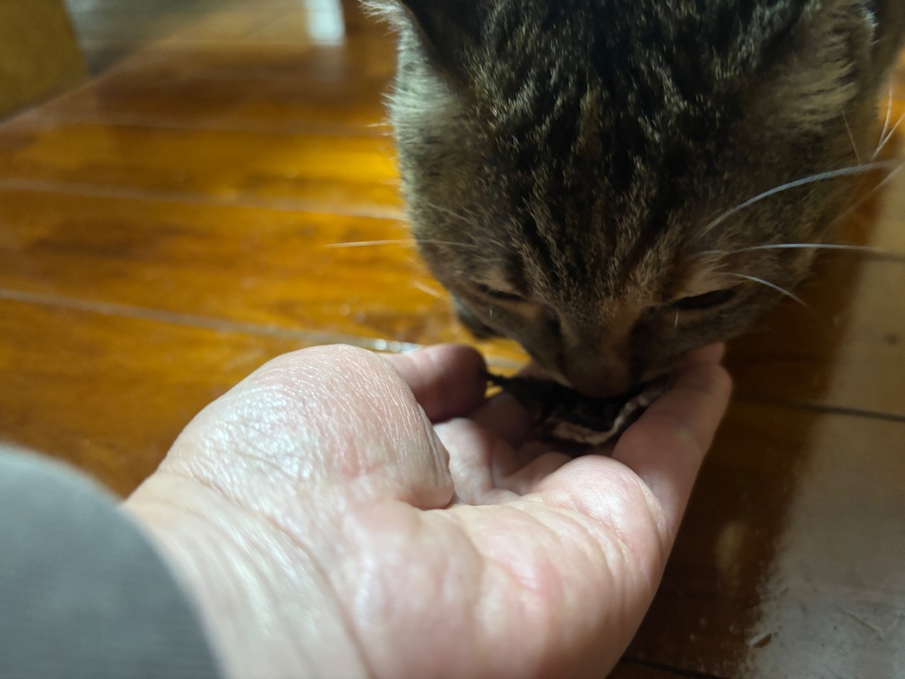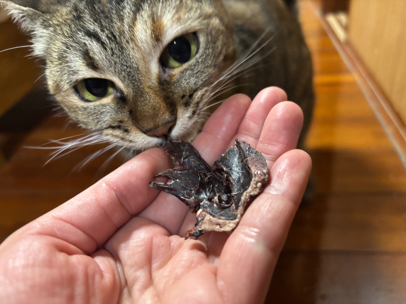 届きました!我が家のキジ姫の食いつきがすごいです。明日は実家の犬にもプレゼントします。プレゼントのハツジャーキーにも狂喜乱舞です笑。本当にいつもありがとうございます✨