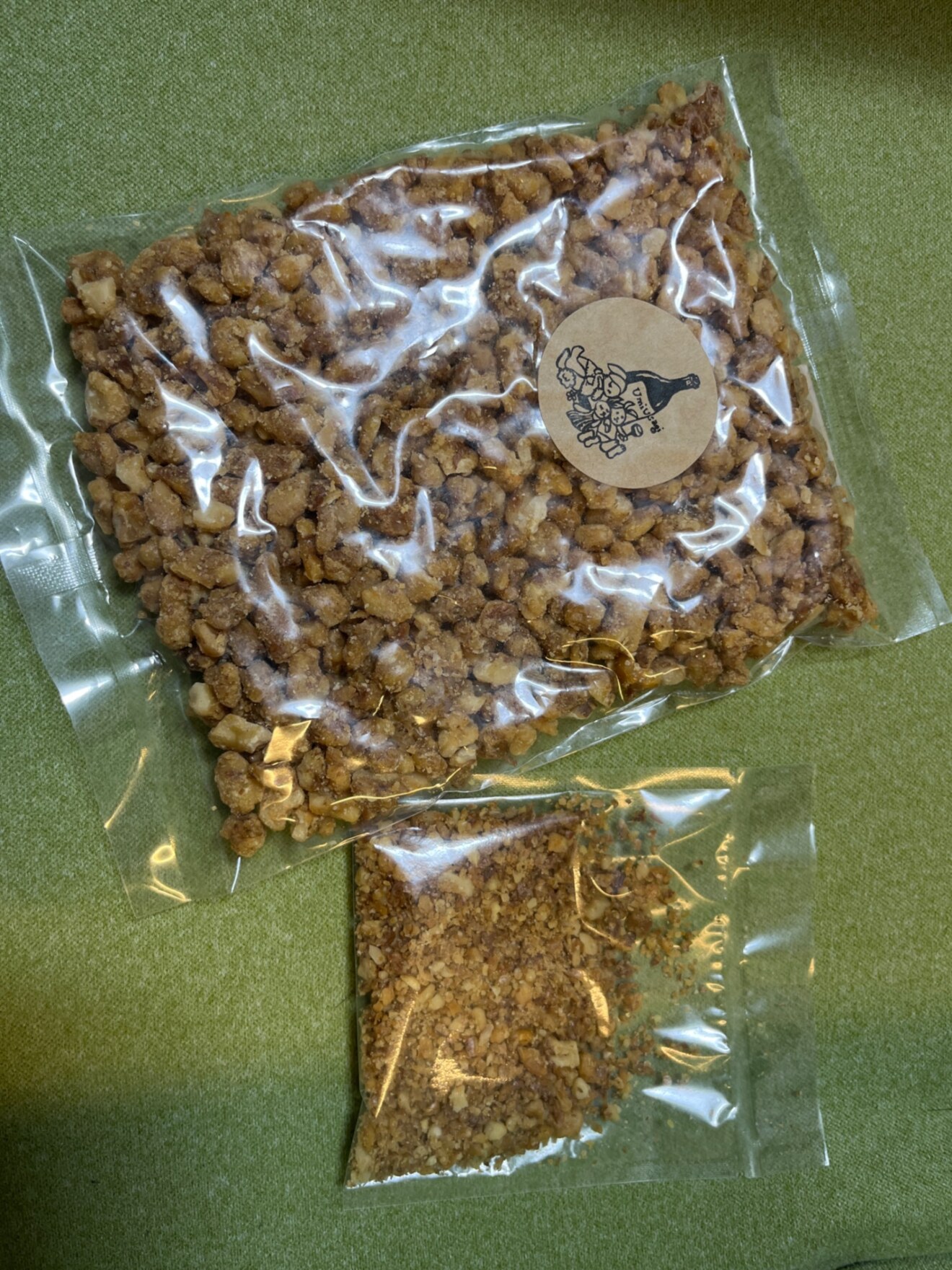 粒は細かめですが、味は通常のくるみと変わらず美味しくお召し上がりいただけます。