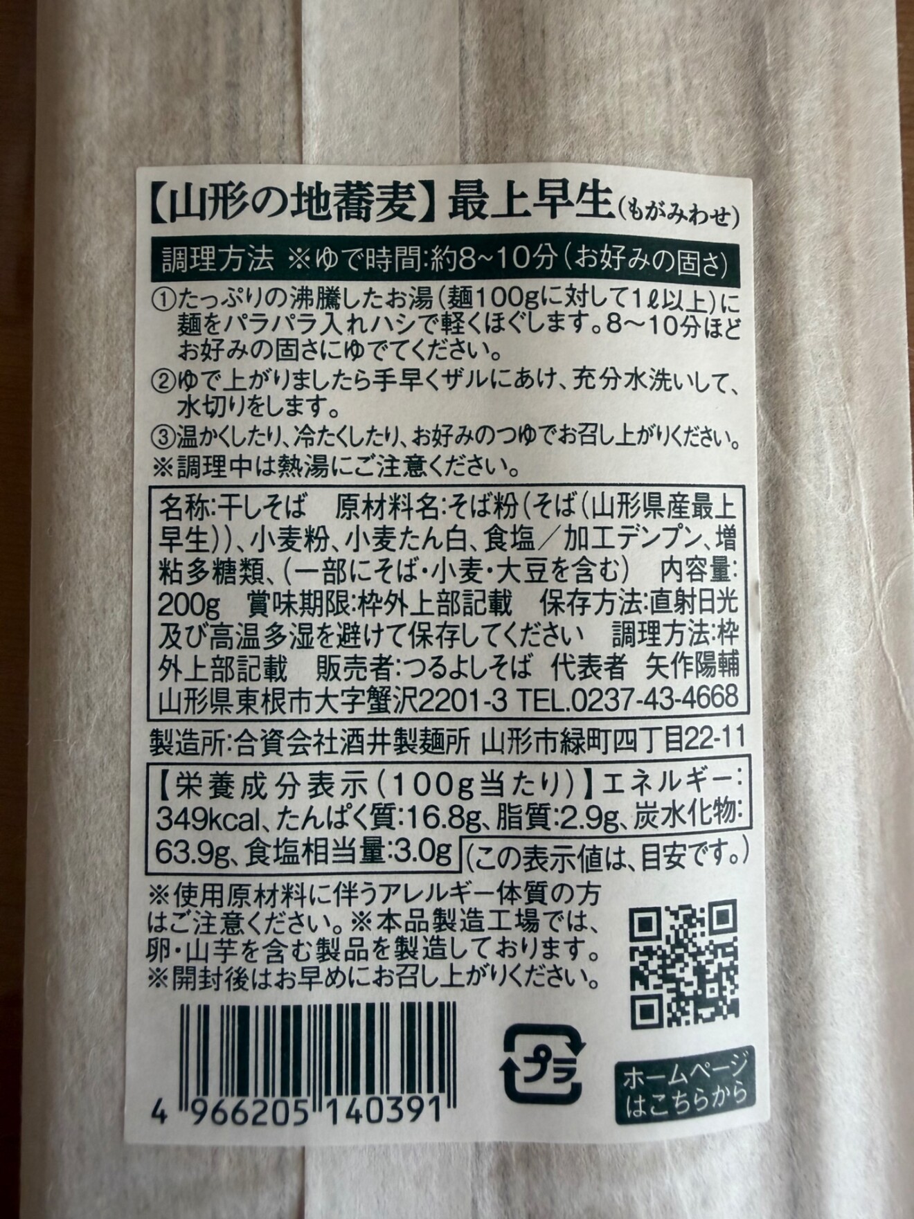 細打ち干し蕎麦『最上早生(もがみわせ)』:200g×4袋