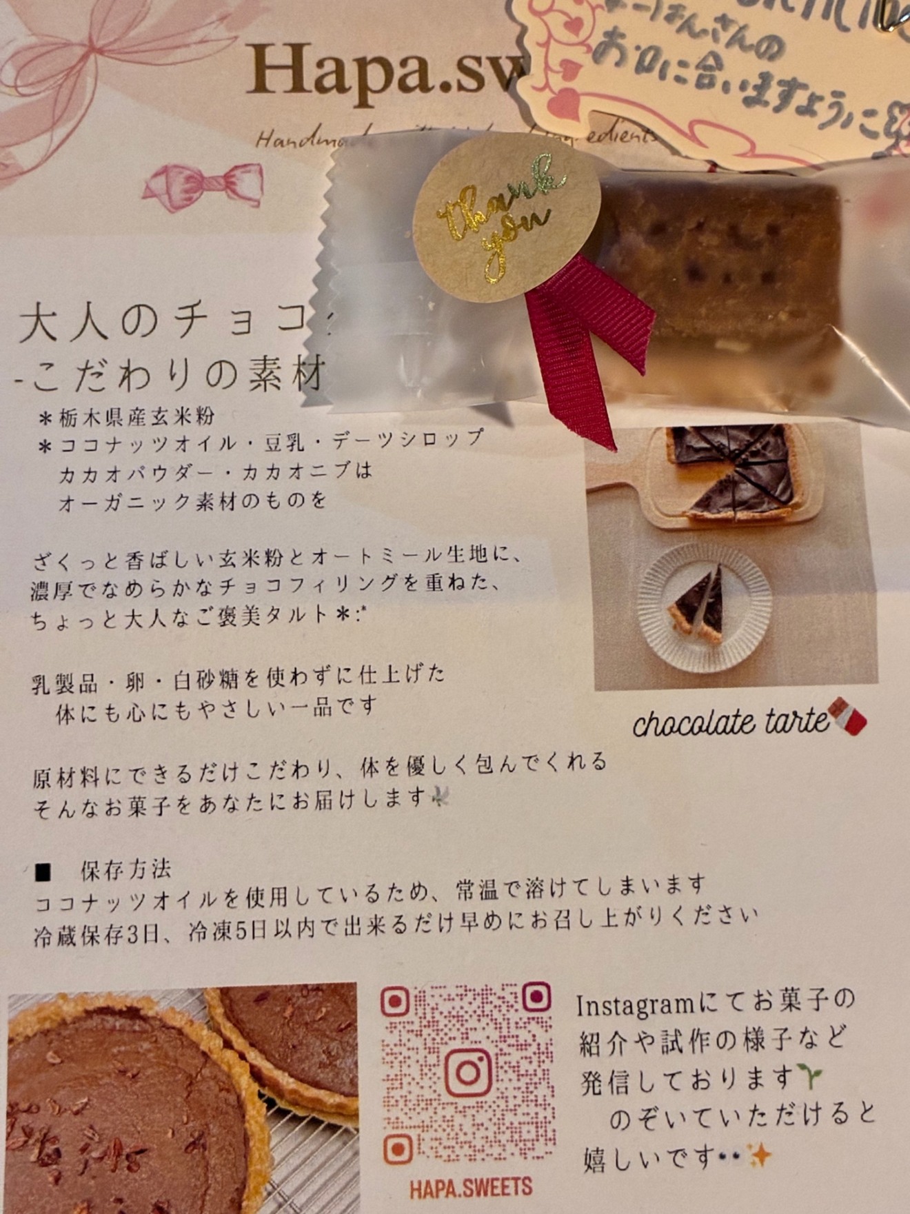 🍫 Hapa.sweets オーガニック・ヴィーガンチョコタルト