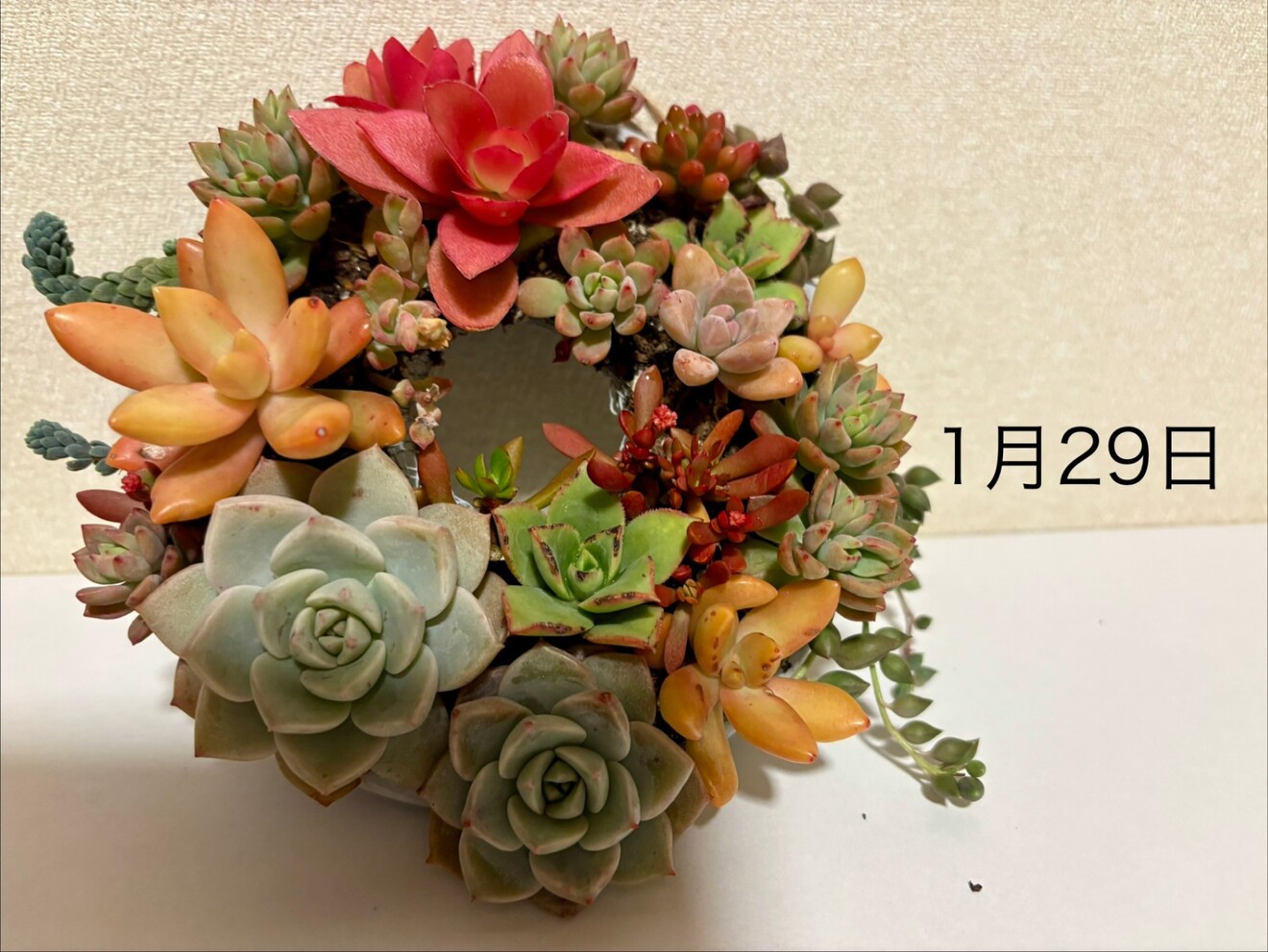 リースを多肉植物で作りました!