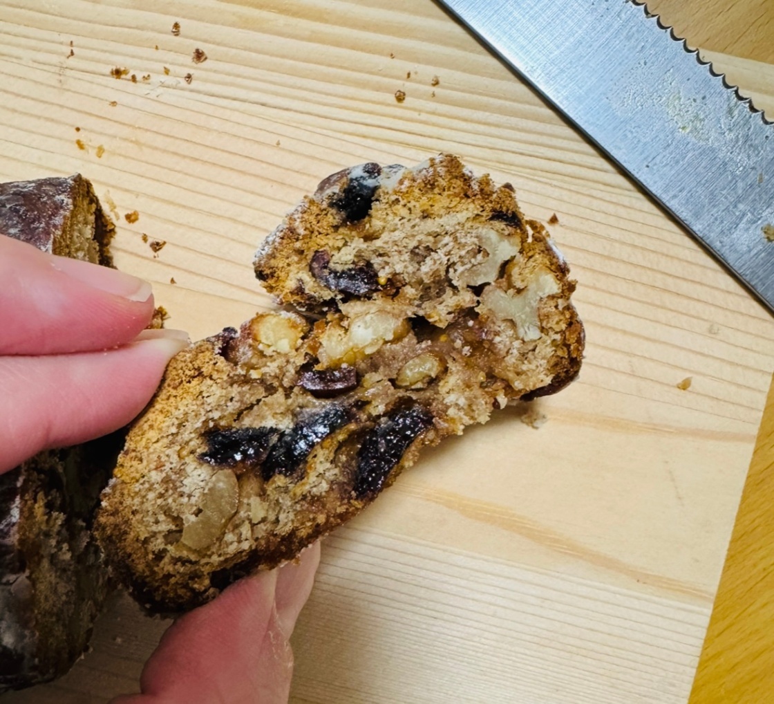 有機小麦粉(北海道)、有機レーズン、きび糖(鹿児島)、有機クルミ、有機豆乳、アーモンド粉、有機いちじく、有機ココナッツ油、菜種油(遺伝子組み換えでない)、天然酵母、有機シナモン、有機カルダモン、食塩(海の精)、無農薬米粉(兵庫)