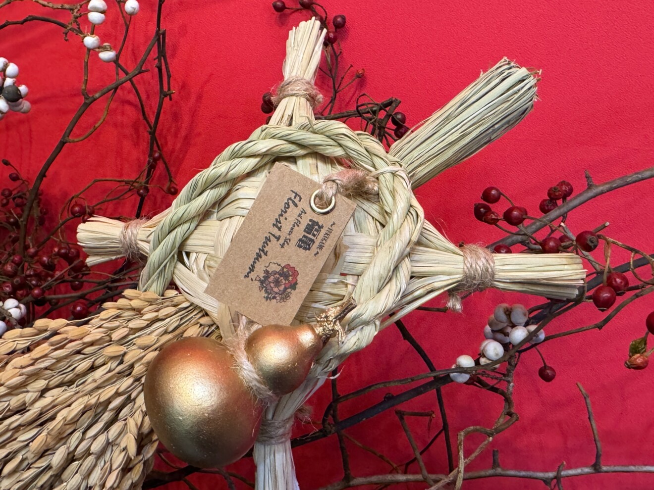 藁を一つひとつ手で編み、亀のかたちに仕上げた