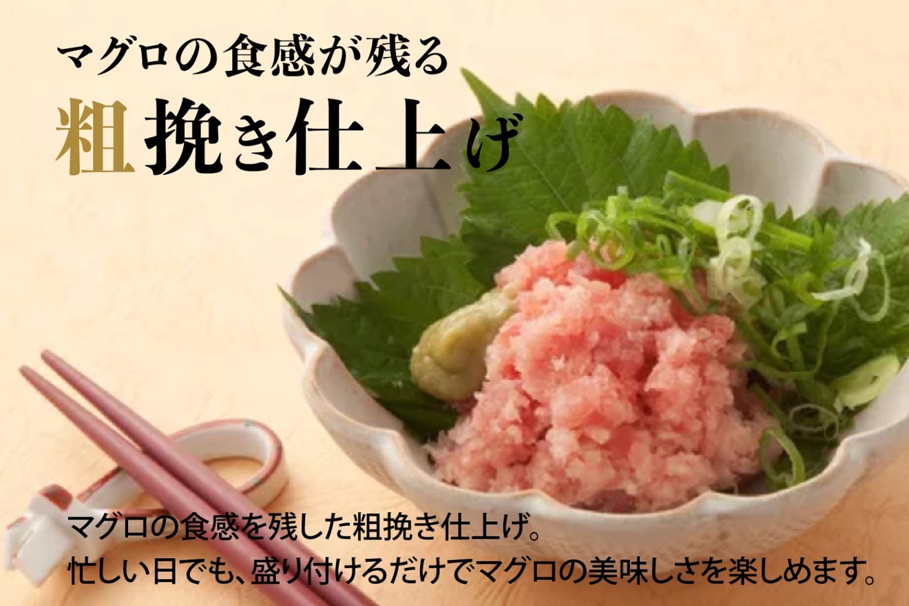 ネギトロ丼にしたときの満足感はもちろん、手巻き寿司にした際の扱いやすさまで考えて、粒感にもこだわって選定しています。