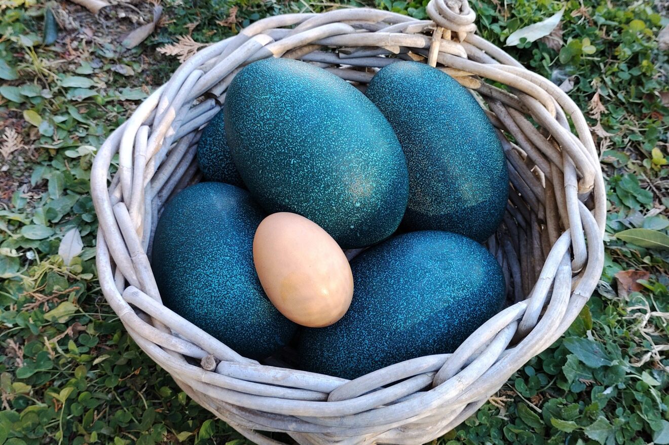 エミューの卵は約500〜600g(鶏卵約10個分)の特大サイズ。