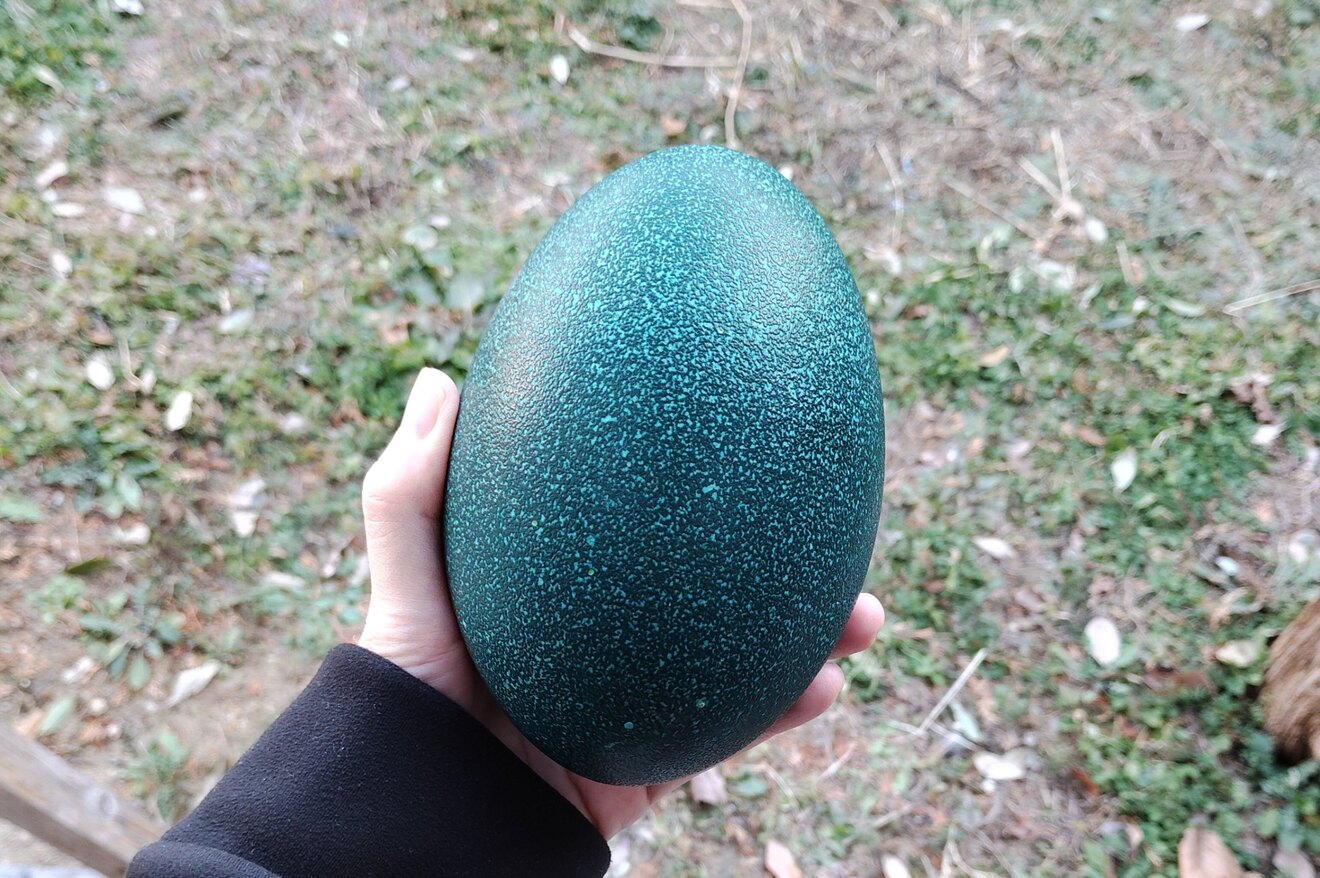 初めてエミューの卵見ましたが想像以上に大きくキレイな色でびっくりしました😳動物好きな孫に見せてあげたくて購入させていただきましたが早く孫達に見せたいです☺️あとはお味も楽しみです😋