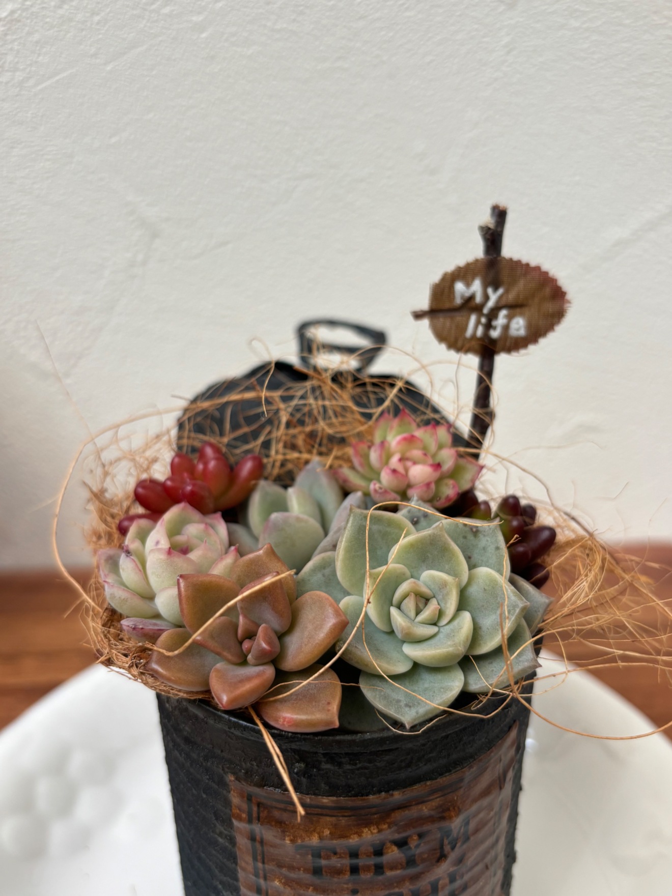 趣味で多肉植物の寄せ植えを作るため、自宅庭で多肉植物やカラーリーフなど育て、増やしています。