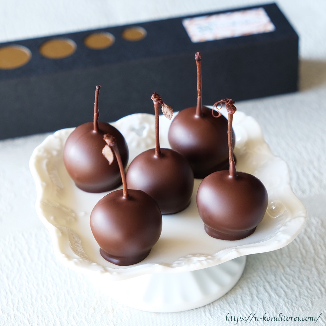 国産サワーチェリーを半年以上お酒に漬けこみ、一粒ずつ丁寧にフォンダンとビターチョコレートでコーティング。