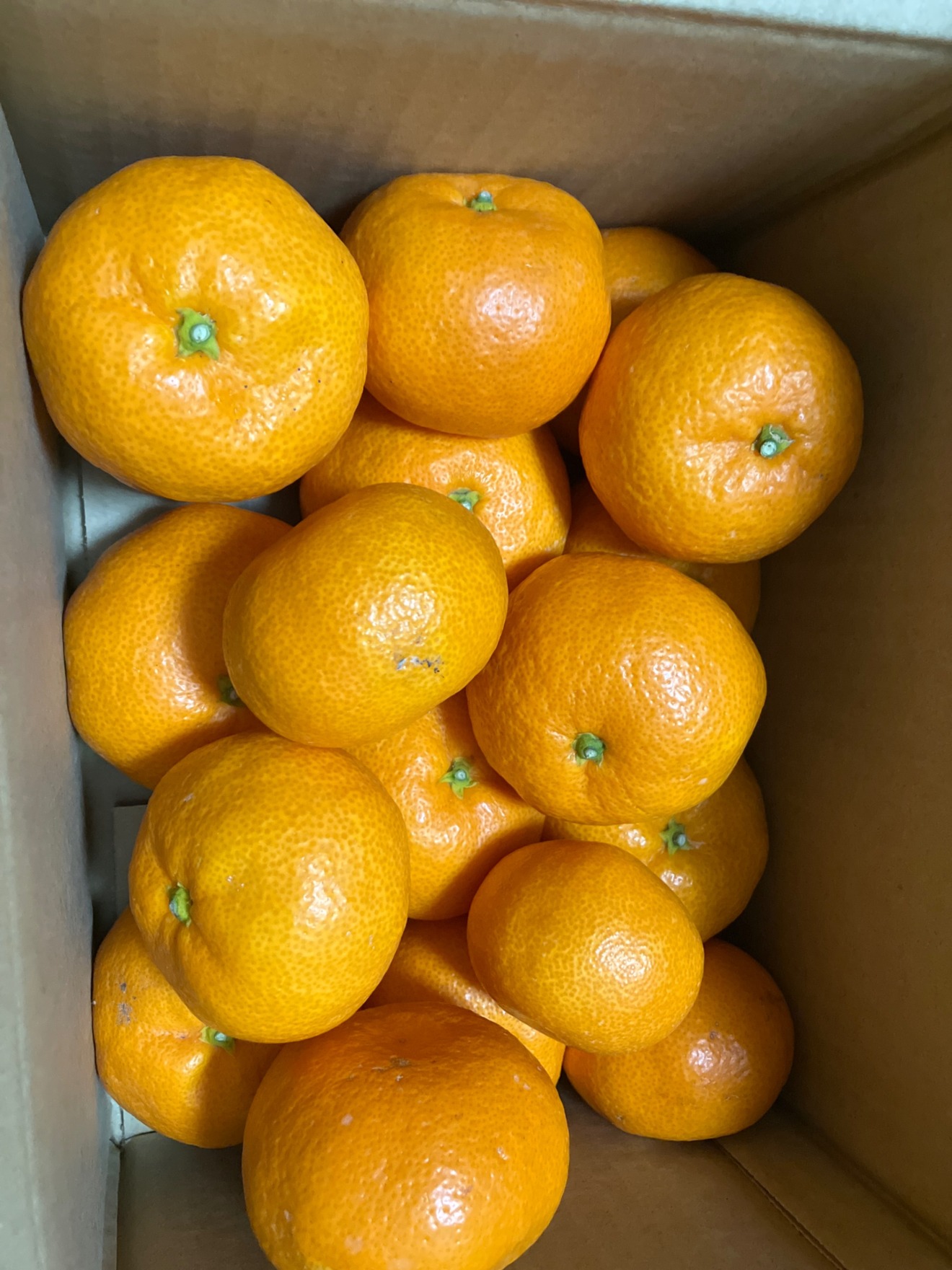 箱を開けたら綺麗な色のミカンがたくさん🍊