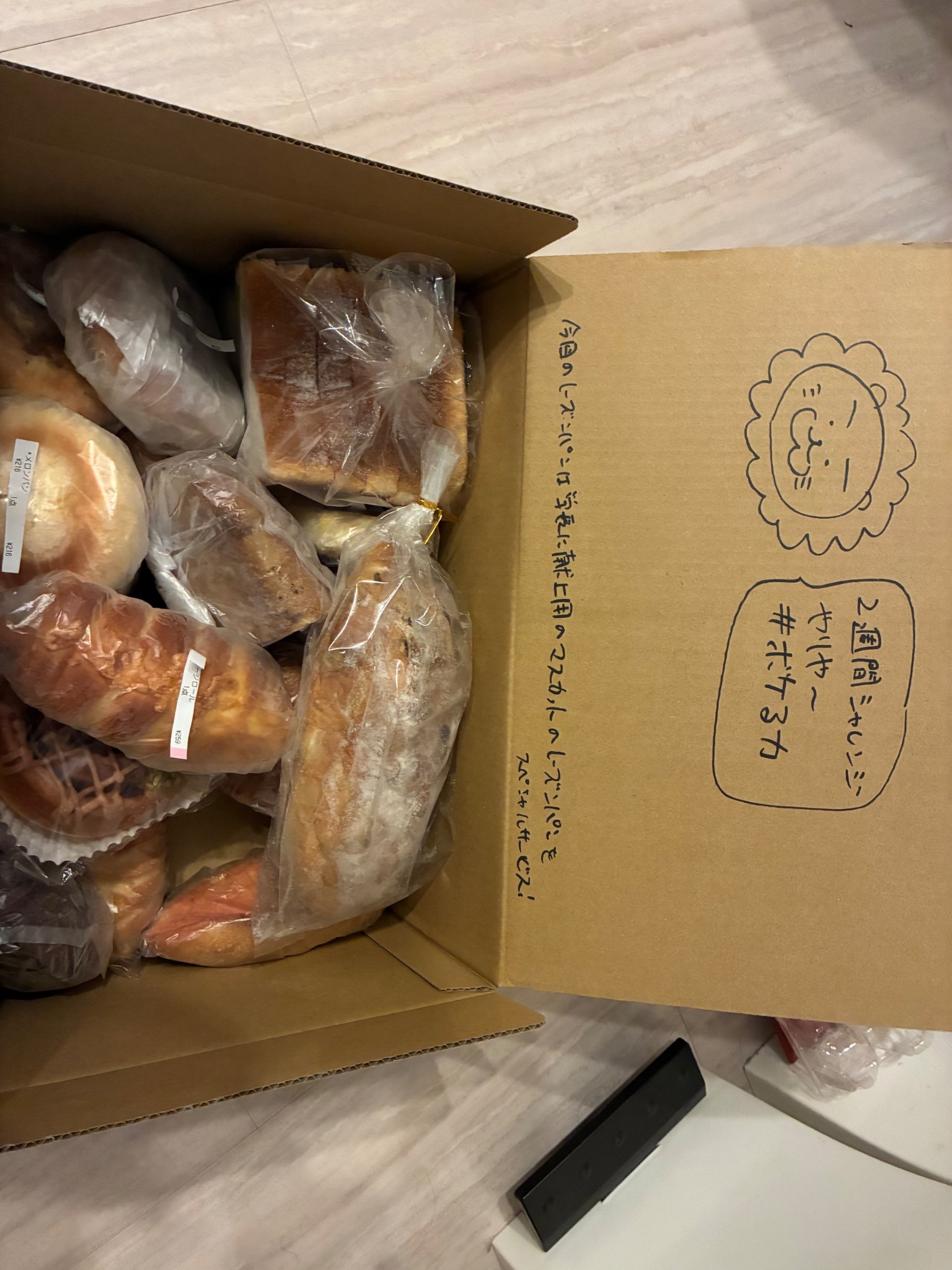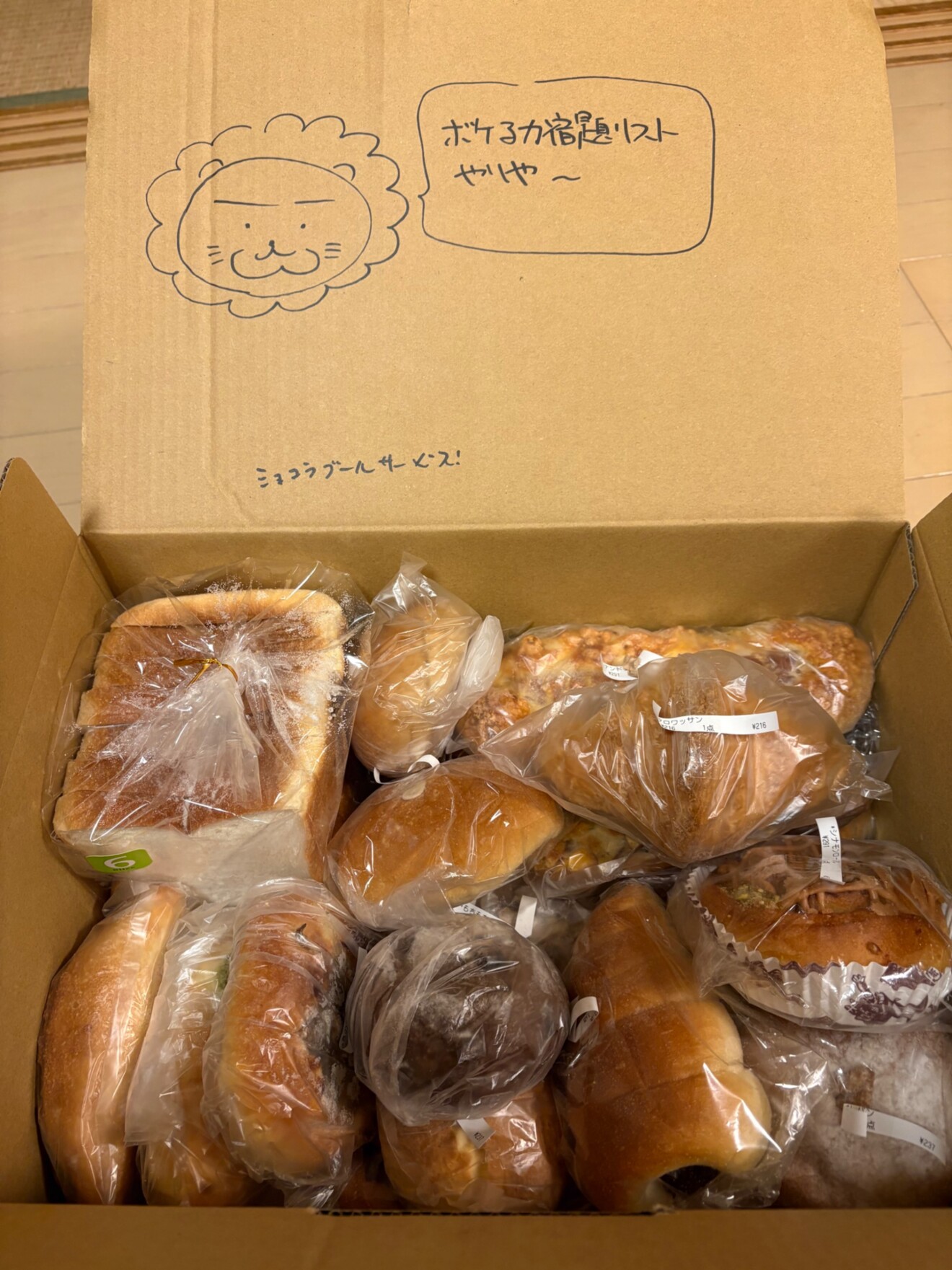今回もいろんな種類のパンが箱いっぱい入っていていただくのが楽しみです。