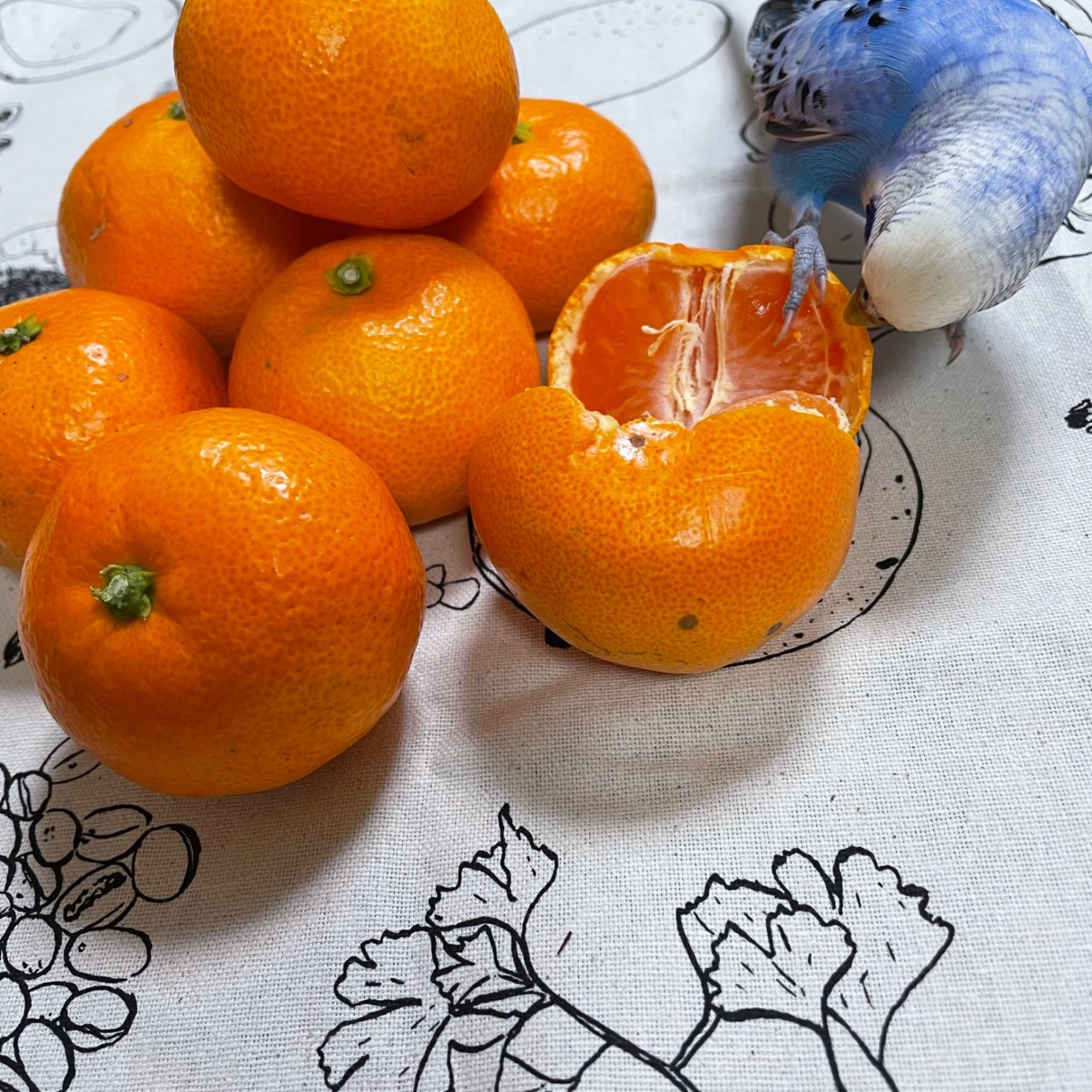 箱から出した一つ目はインコに奪われました🐦