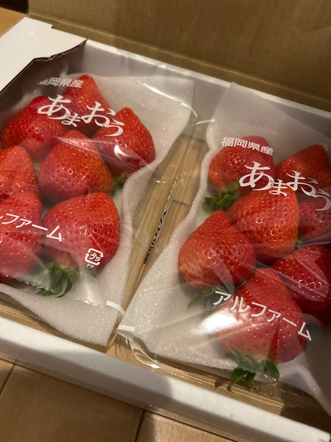 本日、大きな艶々あまおうが届きました。
