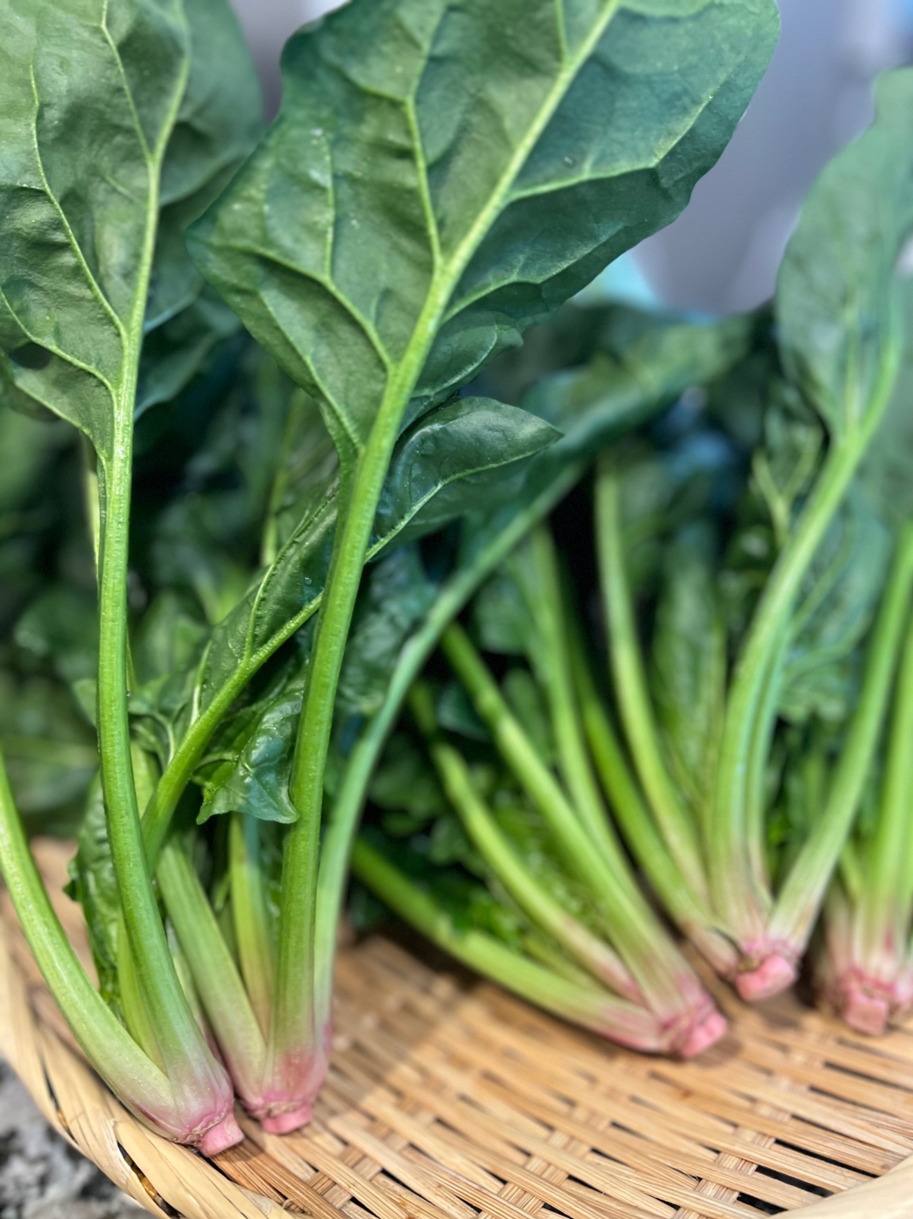 寒さにあたりながらじっくり育った今のほうれん草は、葉も根もぐっと旨みがのっています☺️