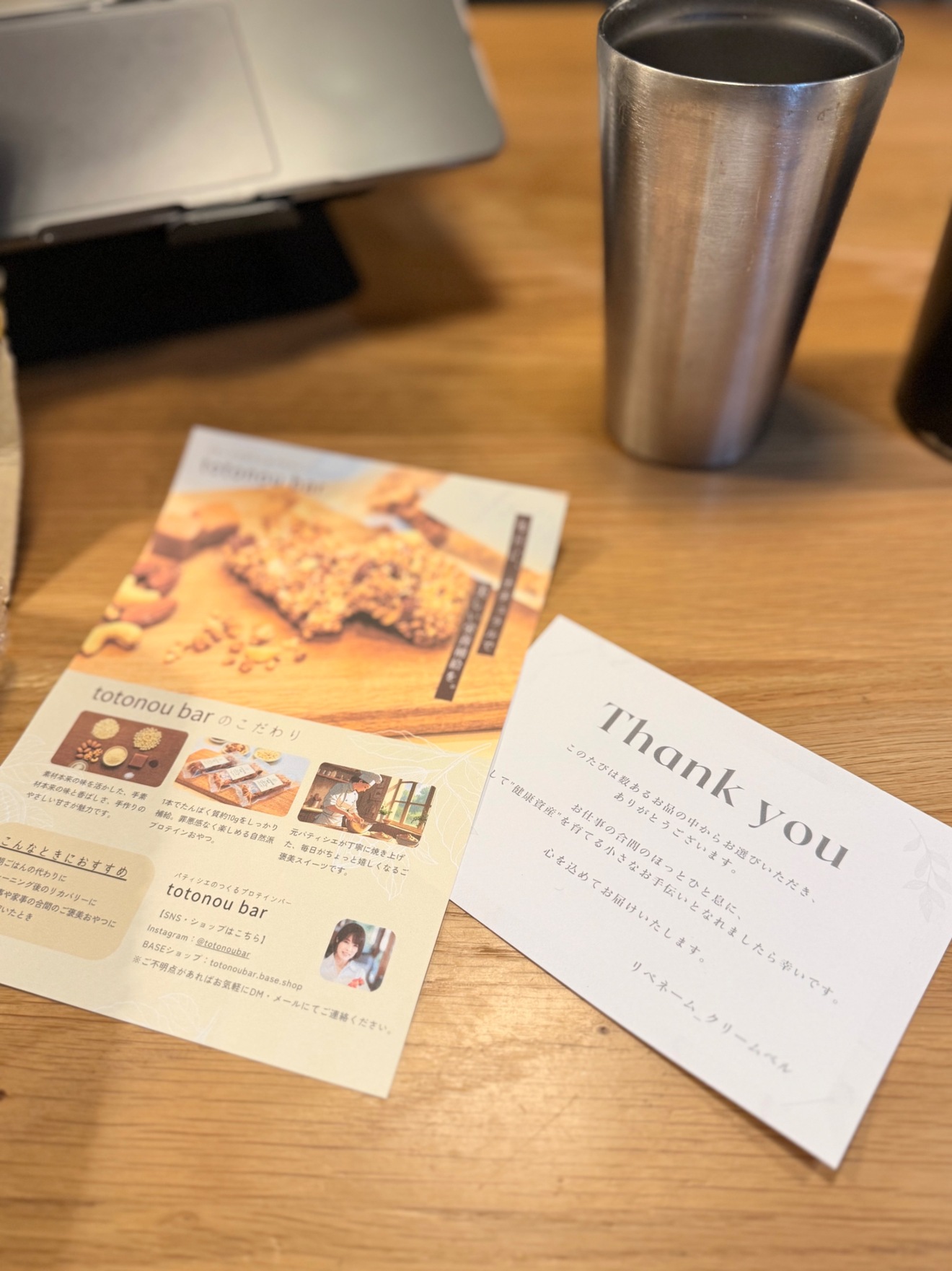 パッケージ、サンクスカード、ショップカードすべてデザインが素敵でした☺️思ったよりバーが大きくて味もとっても美味しかったです!