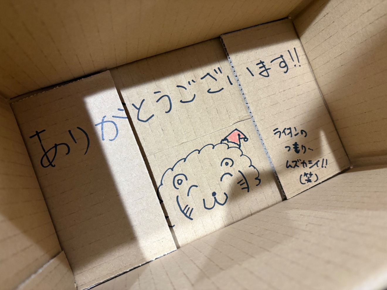 ダンボールの底にまで描かれた可愛いライオンのイラスト🦁