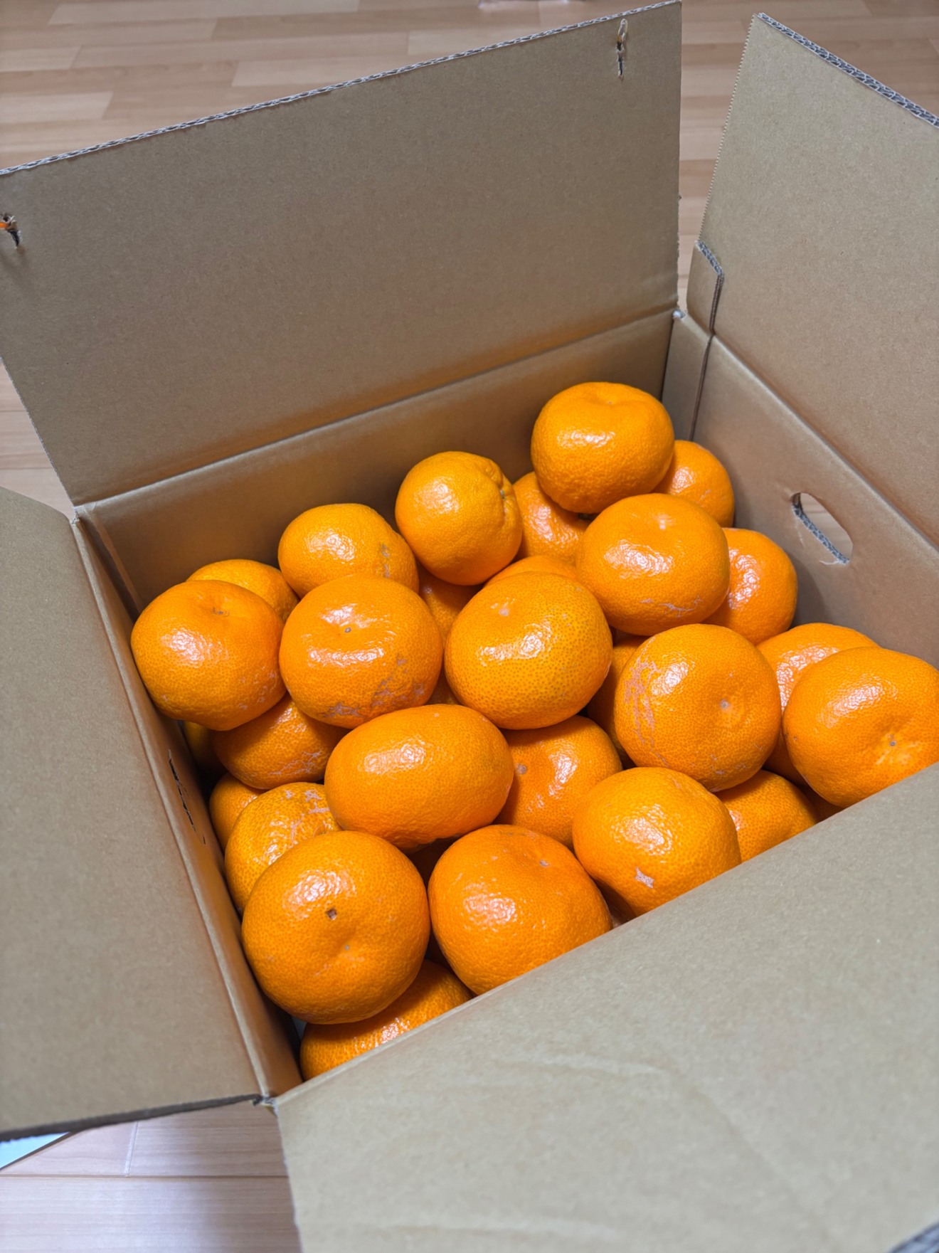 箱を開けてビックリ‼️です!艶やかな🍊✨手のひら一杯の大きさ、🍊みずみずしく甘く薄皮まで柔らかく皮ごといただきました🎶美味しいおみかんをありがとうございました✨✨✨