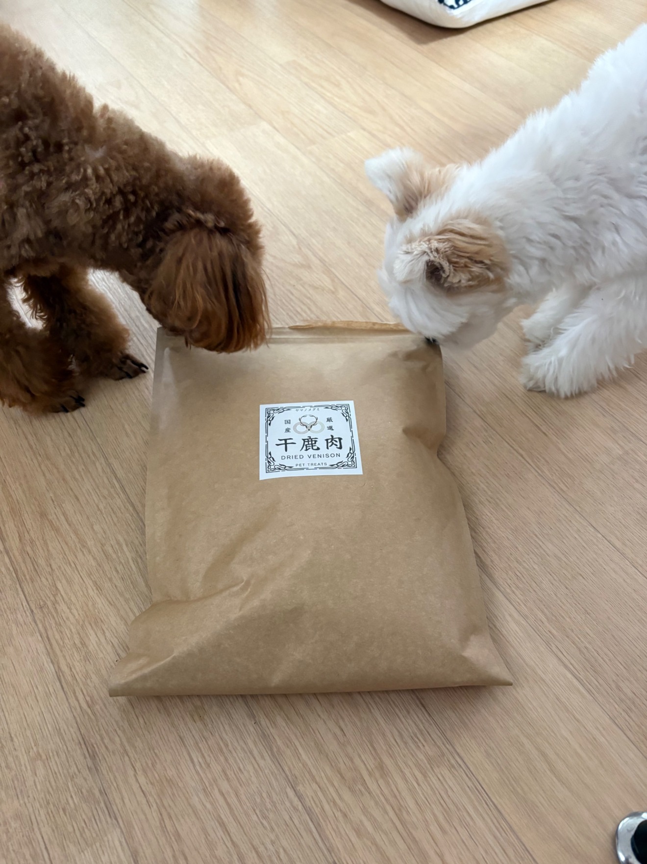 届いてすぐに2匹のワンコのおやつにあげました、しつこくつきまとって来ています笑