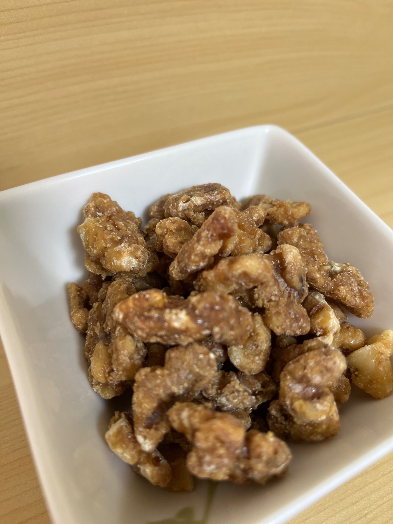 くるみ特有の乾燥した感じが苦手だったとのこと、それでも挑戦していただき、「感動」とまで言っていただけて…店主としてガッツポーズが出るほど嬉しいです!丁寧にキャラメリゼすることで、カリッとした食感と食べやすさにこだわりました。