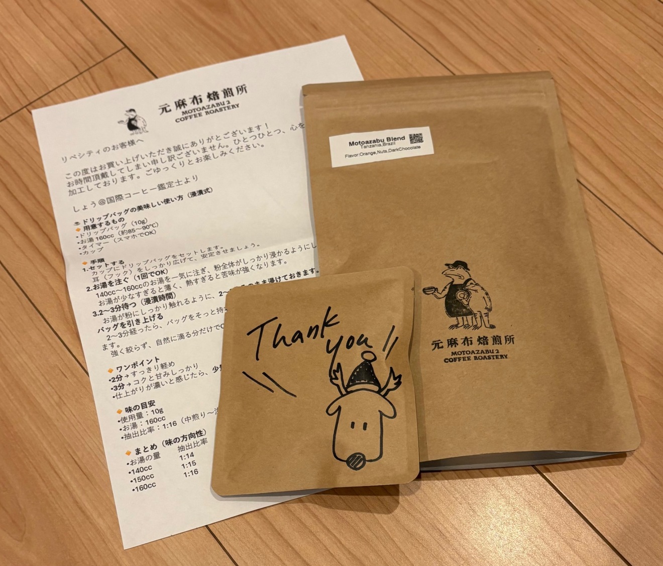 可愛いパッケージのおまけに加え、美味しいコーヒーの作り方メッセージも入れてくださり、感謝です。